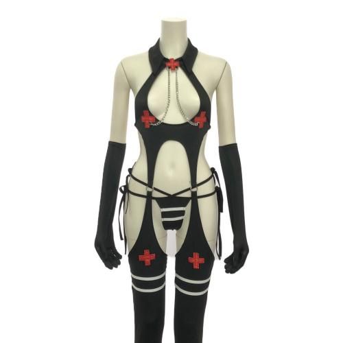 五感全てで楽しむちょっぴりハードなバニーガール風セクシーコスプレ(SEXYCOSPLAY)。ボディラインが露わになったボディスーツスタイルのバニー×ナースコスプレ。露出したバストにはチェーンが施されちょっぴりハードな印象。クロッチ部分もバスト同様にカットアウトされているので、ボディスーツを脱ぐことなく濃密時間を過ごせます♪指先や足先が布で覆わせることでフェティシズムを刺激し、パートナーの違う一面を発見できるかも!?