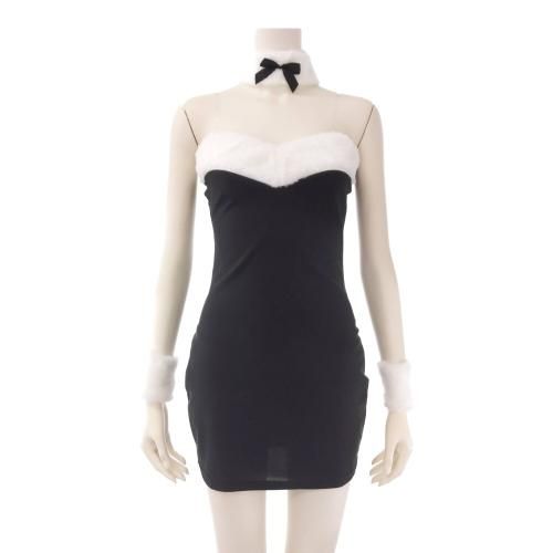 キュートな萌えアイテムが満載のバニーガール風セクシーコスプレ(SEXYCOSPLAY)。ベアトップワンピースは程よいストレッチ性のある生地でボディにフィットし、胸元にはふわふわのファーをあしらいキュートな雰囲気に。カフスやチョーカー、カチューシャにもファーを仕立て可愛らしさを追求しました。露出度は少な目なのでセクシーコスプレ初挑戦の方にもチャレンジしやすいアイテムです。