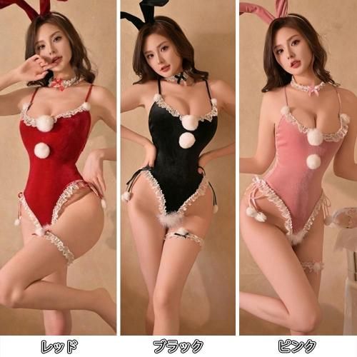 後ろ姿からも攻める大胆オープンバックのベロア風バニーセクシーコスプレ(SEXYCOSPLAY)。ベロア風の光沢と柔らかな肌触りが心地良い、ボディラインを際立たせたテディタイプのバニーガール。テディ風のデザインでボディラインを美しく見せ、縁取りには白いフリルやレース、胸元と太もも部分には白くてふわふわなポンポンがあしらわれ愛らしいアクセントに。また、背中が大きく開き、アンダー部分はクロッチからヒップまでオープンバックの大胆な肌見せがパートナーの高揚感を高めます。