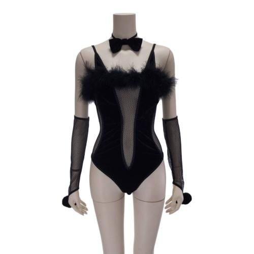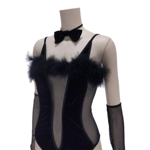 レースアップから覗く素肌がコケティッシュなバニーガール風セクシーコスプレ(SEXYCOSPLAY)。光沢のあるベロア生地を使用しバストの切り込み部分に透け感たっぷりのメッシュとレースアップをあしらい大人の色気を放ちます。耳のカチューシャと丸くフワフワの尻尾はバニーガール必須アイテム。