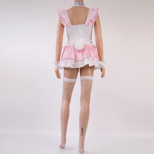 愛らしさが癖になるバニーガール風セクシーコスプレ(SEXYCOSPLAY)。淡いピンクが可愛らしいバニーガールは、アイドル風のフリフリデザインでさらに甘さをプラス♪たっぷりのフリルやレースなど、女の子が大好きなものだけを集めた無敵のエロカワデザインです♪トップスは3段3列のホック留めです。