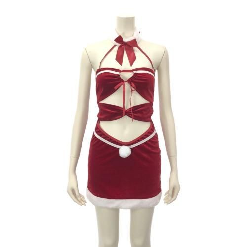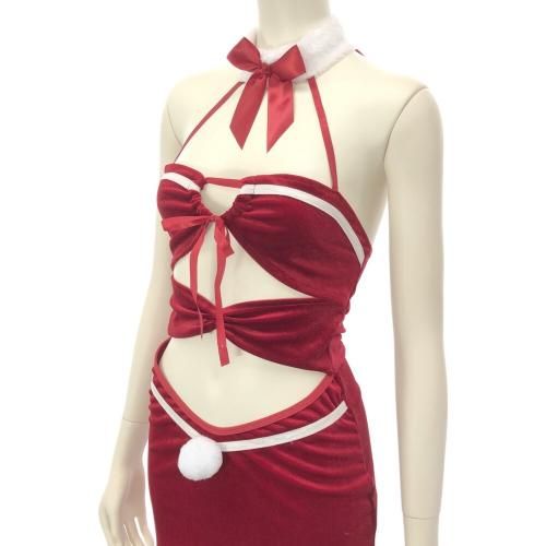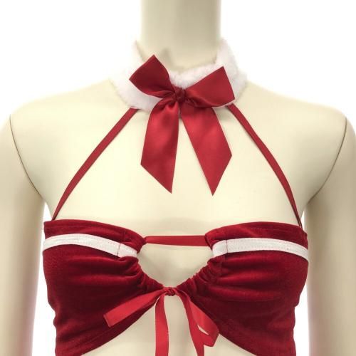 カットアウトから覗くおへそが可愛いサンタガール風セクシーコスプレ(SEXYCOSPLAY)。モコモコチョーカー風の襟がフェミニンなデザインで、ボディコンのタイトなラインが女性らしい曲線美を描く人気のミニ丈ワンピース。カットアウトから覗く素肌に、バスト部分はリボンで結ばれただけのシンプルデザインで解いた瞬間の露わな姿にパートナーの期待も膨らみます♪