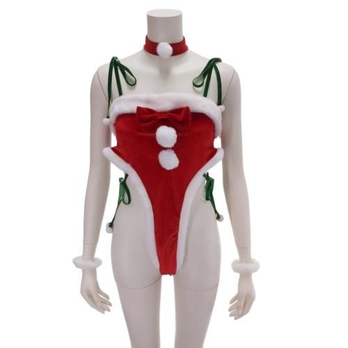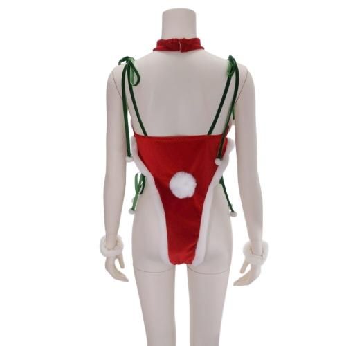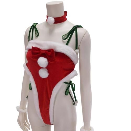 解きたくなる超ハイレグサンタガール風セクシーコスプレ(SEXYCOSPLAY)。バスト下まで伸びるハイレグが見えそうなギリギリラインで視線が熱い。レッドに映えるグリーンリボンを解くたびに露わになっていく姿にワクワクが止まりません。クロッチは開閉可能なのも嬉しいポイント。