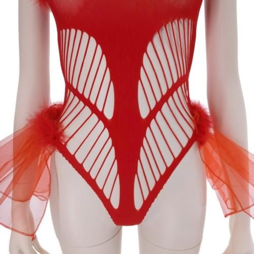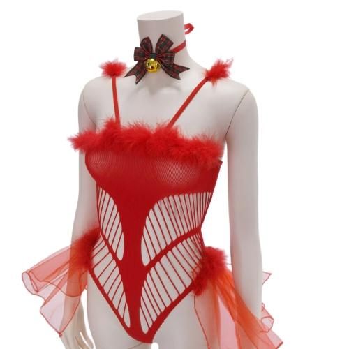 スパイスの効いた真っ赤なボディストッキングサンタガール風セクシーコスプレ(SEXYCOSPLAY)。真っ赤な超ハイレグのストッキングにフワフワファーが大人な刺激を与える。スパイスの効いたルックスに一体になったチュールスカートでキュートさも忘れないデザインです。
