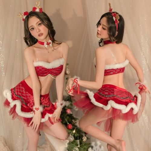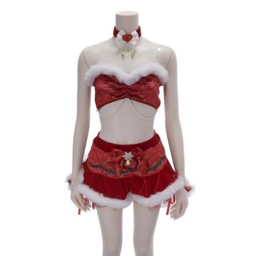 ベルの音色が聖夜に奏でるサンタガール風セクシーコスプレ(SEXYCOSPLAY)。シフォン付きのボリュームスカートのベルが揺れるたびに聖夜に音を奏で、気分も上昇。パールのアクセントブラや鈴付きチョーカー等、装飾も盛りだくさんでセクシーなパーティにピッタリです。