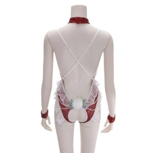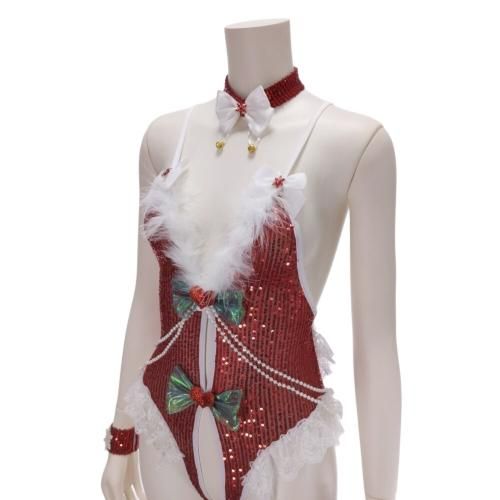スパンコールが眩いバニーガールサンタガール風セクシーコスプレ(SEXYCOSPLAY)。キラキラとスパンコールが輝き、レースの縁取りにパール風アクセントがエレガントながら、オープンクロッチなセクシーデザインでパートナーと大胆で濃厚な時間を過ごしては?