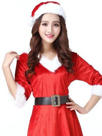 Aラインのフレアワンピがコスプレしながらスタイル良く見せてくれるサンタガール風セクシーコスプレ(SEXYCOSPLAY)。袖ありのワンピデザインのサンタガールコスプレはベーシックでありながらAラインとベルトでさりげなくウエストを高くみせて、可愛らしさと同時にスタイルアップ効果もある嬉しい1着です。モコモコのレッグウォーマーで、暖かさと可愛さをさらにプラス♪
