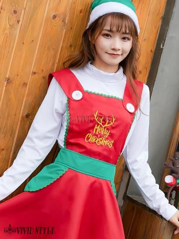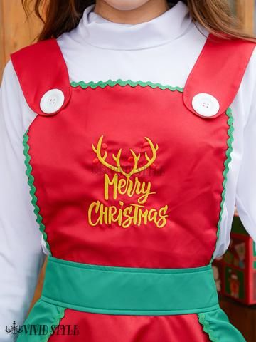 トップス付きが嬉しいフリフリエプロンワンピのサンタガール風セクシーコスプレ(SEXYCOSPLAY)。クリスマスカラーを使用したAラインのエプロンワンピは、裾がフレアに広がりふんわりとした印象で思わず抱きしめたくなるほど最高にキュート♪胸元にはクリスマスメッセージの刺繍をあしらい、気分は完全にクリスマスモードでテンションが上がるイベントアイテムです。