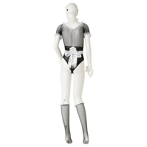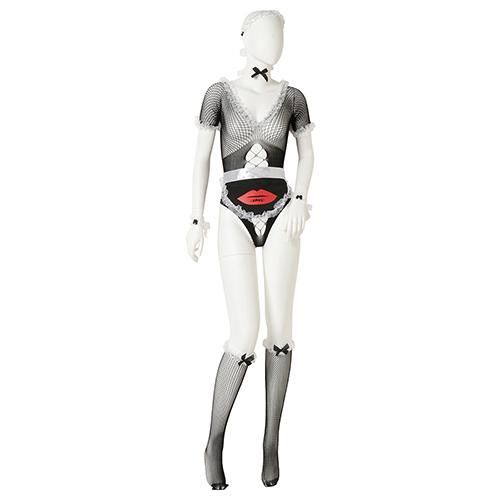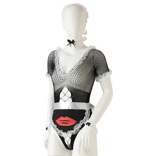 大きさが違う網目から素肌が覗き魅惑的な雰囲気を演出するメイド風セクシーコスプレ(SEXYCOSPLAY)。バストは大きく開き隠し切れないバストが露に。クロッチ部分にも大きい網目を仕立てエプロンをしても隠し切れない状態にパートナーの興味を集中させること間違いなし。リボン、チュール生地、レースとメイドさんを連想させるアイテムに使用しキュートさも演出。エプロンにはキスマークが大きくプリントされセクシーアピールが止まりません。