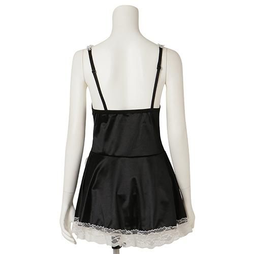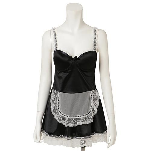 ブラカップ付きメイドワンピ風セクシーコスプレ(SEXYCOSPLAY)。ワイヤー入りのブラカップが付いたAラインのキャミワンピを、レースやリボンでメイド風に仕上げたキュートなデザイン。ワイヤーがしっかりバストを支え胸元を強調してくれるので、甘いだけじゃなくセクシーな印象も♪