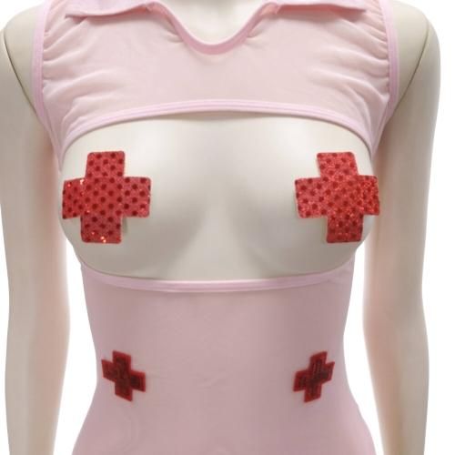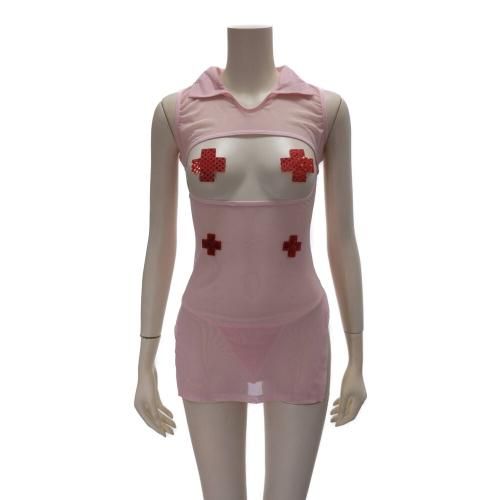 メッシュ生地越しに見える素肌とこぼれるバストが魅惑を発するナース風セクシーコスプレ(SEXYCOSPLAY) 。透け感たっぷりのメッシュ生地を使い、注目を集めるバスト部分は大胆にオープンに猥りがわしく過激なデザイン。スカートはサイドスリットを入れて太ももの露出度をアップ。ヒップラインが見えてしまいそうな危うい着丈でドキドキ感を味わえそう。バストトップを隠せるニプレス付きで想像力を掻き立てる魅力あふれるナースコスに仕上げました!