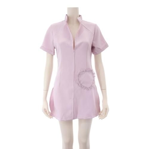 リアルナース感があふれるミニ丈ワンピのナース風セクシーコスプレ(SEXYCOSPLAY)。本物のナース服に近いしっかりとした生地で仕立てたコスチューム。スタンドカラーで露出少なめですが、ジッパーの昇降でボディアピールが可能♪裾はスリットが入っているので動きやすさも◎。レースをあしらったポケットで可愛らしさをプラス。