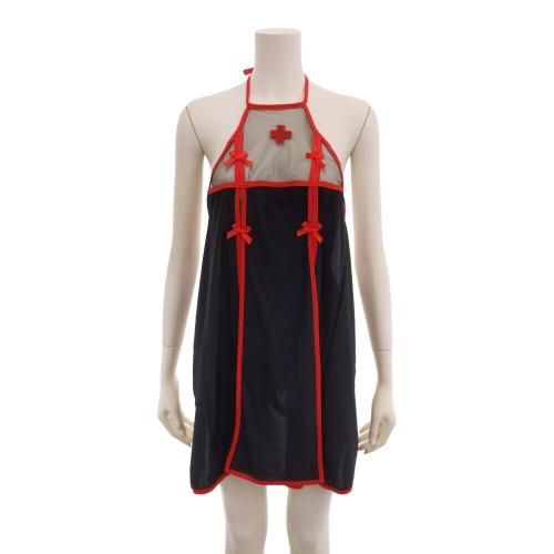 ひらひらスリットがセクシーなナース風セクシーコスプレ(SEXYCOSPLAY)。サラリと滑らかな生地に大きくカットされたスリットから曝け出される素肌が視線を集中させるナース風のセクシーコスプレです。バスト部分のメッシュ生地は透け感があり生地越しの素肌がフェロモンたっぷりに見せ、バックスタイルはヒップラインを見せつける仕立てに興奮度を高めます。ワンピースはストリングで結ぶ仕様でサイズを気にせずご着用頂けます。