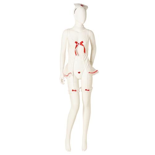 素肌の露出と透け感で色気たっぷりなナース風セクシーコスプレ(SEXYCOSPLAY)。フラワーメッシュチュールでふわりと柔らかなラインを作り、素肌の計算された露出でリボンなどのキュートなデザインの中に色っぽさを演出するアイテムです。ストレッチ素材とメッシュチュールの異素材を合わせ生地越しの透け感も楽しめます。Tバックショーツのフロントにもチャーミングなハートの刺繍をあしらいました。セットのカチューシャを合わせればよりコスプレ感を高めパートナーと盛り上がること間違いなし♪