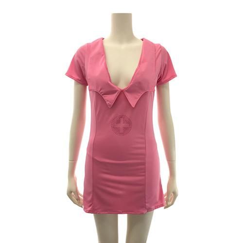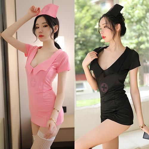 デコルテが大きく開きヒップギリギリのミニ丈感と大き目の襟が可愛らしさも演出するナース風セクシーコスプレ(SEXYCOSPLAY)。胸元の大胆なカットはパートナーの視線も集中してしまうほど大きく開き、背中も大きくカットされているのでバックスタイルにも色気漂う雰囲気に。ナースキャップとワンピースに仕立てた小ぶりなスパンコールのナースモチーフが可愛らしさを演出します。伸縮のある生地はタイト過ぎず、着やすさにも拘りました。ヒップラインが見えてしまいそうな危うい着丈感はドキドキ感を味わえます♪
