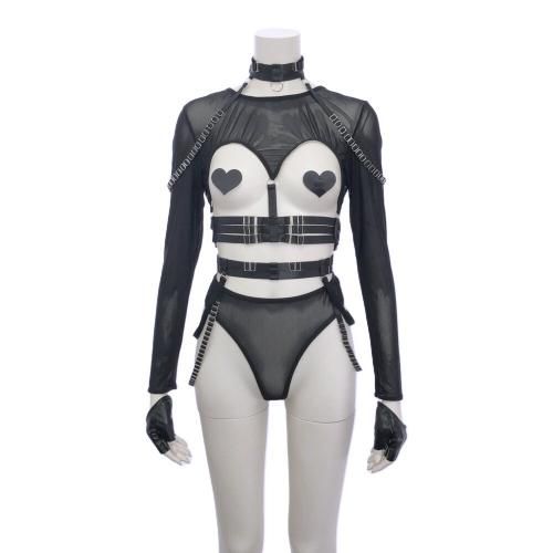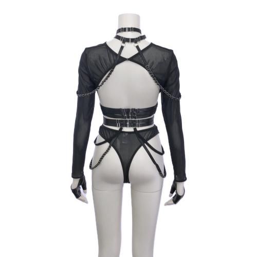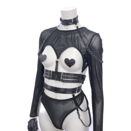 逆露出が生み出す刺激的な婦人警官風セクシーコスプレ(SEXYCOSPLAY)。体に沿ったいくつものラインやチェーンがハードで、ボンテージ感のあるフェティッシュスタイルの逆ポリスウーマンセクシーコス。メッシュトップスはバストを強調したM字に大胆カットされ、さらにスケスケのメッシュショーツがコケットリー。フェイクレザーグローブのヒンヤリ感も刺激的で、ショーツから露わになった太もも、そしてニーハイストッキングへと続くラインは肉感的でフェチさんには堪らない曲線美を生みます♪