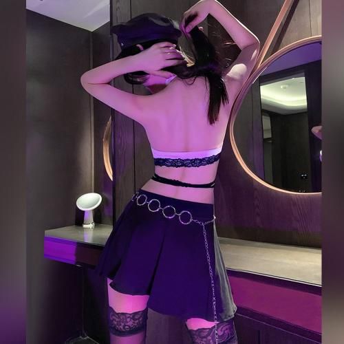 脚フェチさんには堪らない躍動感あふれるミニスカDJポリス風セクシーコスプレ(SEXYCOSPLAY)。バストトップがわずかに隠れるほどのギリギリな開襟トップスに、レースリボンがウエストを拘束するようにクロス。片側サイドレースアップのミニスカートからはセクシーな太ももが露わになり、そこに視線を集めるようにハートモチーフのガーターリングがバッチリきまって脚フェチには堪らないスタイルの逸品!お堅い職業とのギャップに心躍る1着に仕上げました☆