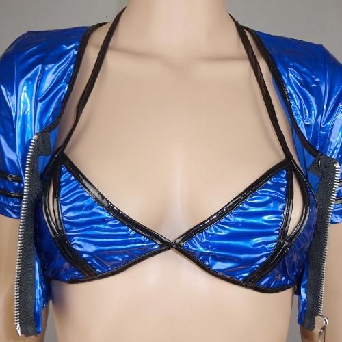 パツパツタイトなミニスカポリス風セクシーコスプレ(SEXYCOSPLAY)。艶のあるエナメル素材を使用したタイトな短め丈がフェロモンをまき散らすセクシーなミニスカポリスのコスプレです。トップスの中にはトップバストがチラ見えするセクシーブラを着用してさらに刺激的に♪