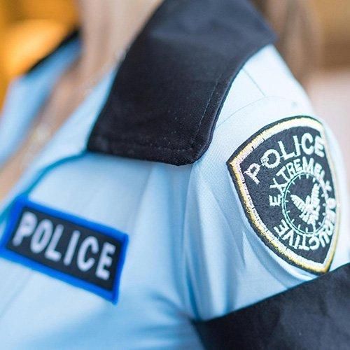 ミニ丈のポリス風セクシーコスプレ(SEXYCOSPLAY)。シャツとスカートのセットアップになったアイテム。トップスはテロンとした柔らかく伸縮性のある生地を使用し、肌にピタッとフィットしながらも程よくのびボディを締めつけながら綺麗なラインを描きます。袖にはあえてパリッとした固めの生地を使用することで腕を引き締め、シャツ感を出すように仕上げました。そして丈をぐっと短くすることで露出度を高めセクシーな印象を演出します!!スカートは厚みのある生地で程よいストレッチのある素材を使用。ヒップラインをキュッとしめ、丸みがありながらもふっくらとしまったヒップを作りだします♪スカートはには手錠の小さな飾りもつていて可愛らしいデザインになっています。ベルトはフリーで長さ調節のできるタイプですのでゆったりと付けたり、キュッと締めて付けることも可能です。
