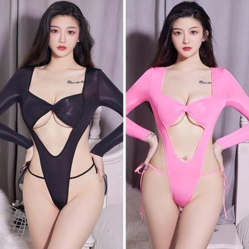 バストから大胆にカットしたハイレグで脚長効果抜群のセクシーテディ(SEXYTEDDY)。やや光沢のある無地のストレッチ素材を使用したレオタードタイプのセクシーテディ。薄めの生地なので着用で生地が引き伸ばされることにより、肌がほんのり透けて見えるのがさり気ないセクシーポイント。デコルテを開けて谷間を覗かせればパートナーの視線もばっちりです。サイドの紐をほどく瞬間がドキドキする刺激的なランジェリーです。