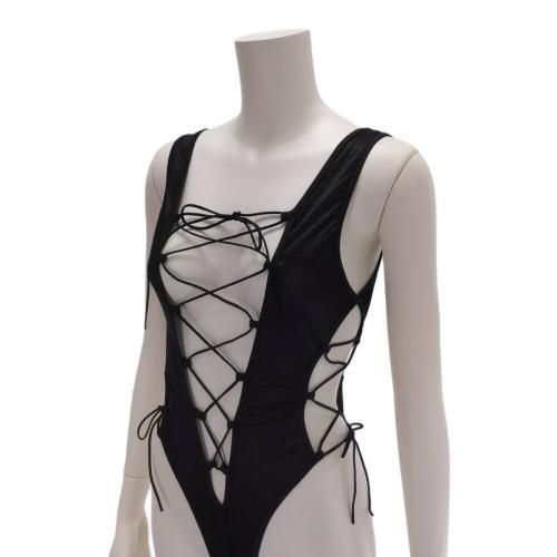 レースアップで魅了するレオタード風セクシーテディ(SEXYTEDDY)。ボディにピッタリフィットしたレオタード風なテディ。指でなぞりたくなるつるつる素材にフロント、サイド、バックスタイル全てのレースアップから覗く素肌がエロティックにパートナーを惑わせる。超ハイレグからはクロッチ部分が見えそうな危うさもスパイシーに気分を盛り上げます。