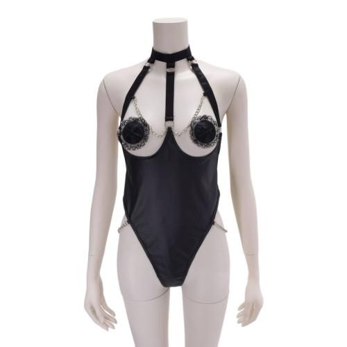 拘束感のある甘辛ミックスなセクシーテディ(SEXYTEDDY)。落ち着きあるマットな質感のレザー調テディにレースとリボンの二プレスで甘さをミックス。テディとの境がよりバストを強調し、女性らしいラインをアピール。セットの手枷を装着すれば拘束感がグッと上がり情欲的な時間を過ごせそう。