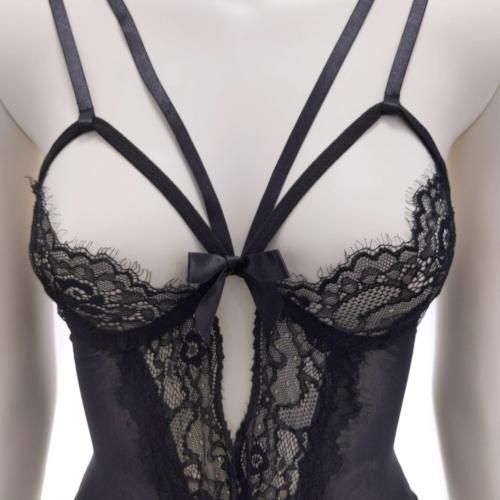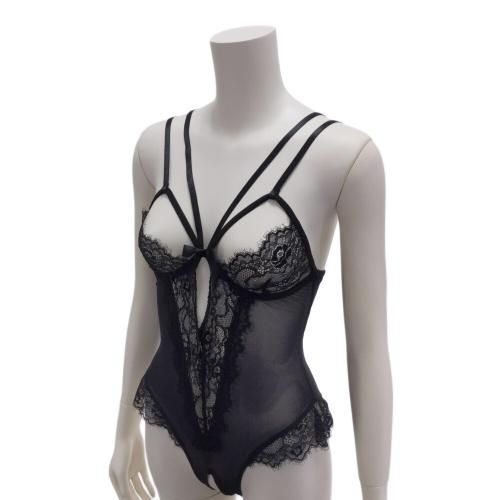 ストリングデザインが際立つオープンクロッチセクシーテディ(SEXYTEDDY) 。メッシュ×レースの透け感とフリルが色っぽく胸元のストリングは拘束感も感じられ、ワクワクとゾクゾクが止まらないデザイン。オープンクロッチで脱がずにパートナーの体温を存分に感じてみては?