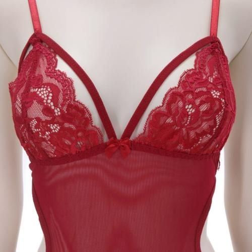 ストリングオープンクロッチが絶頂の時を刻むセクシーテディ(SEXYTEDDY)。透け感あるメッシュ素材にストリングオープンクロッチがなんとも大胆で、ウエストはサイドカットアウトでスタイルアップ。羞恥と破廉恥の間で揺れる姿も気分が高揚する欠かせないスパイスに。