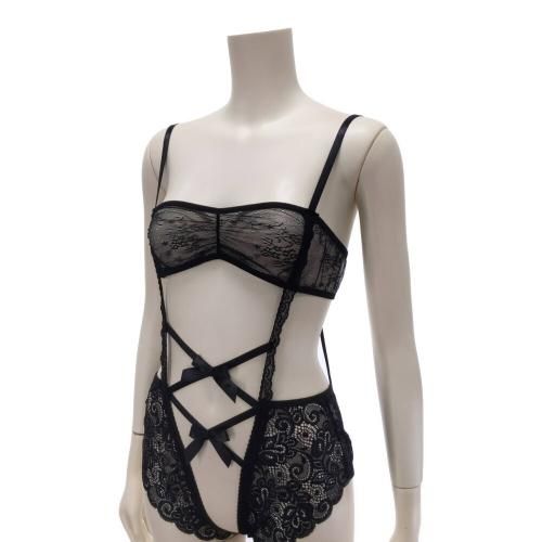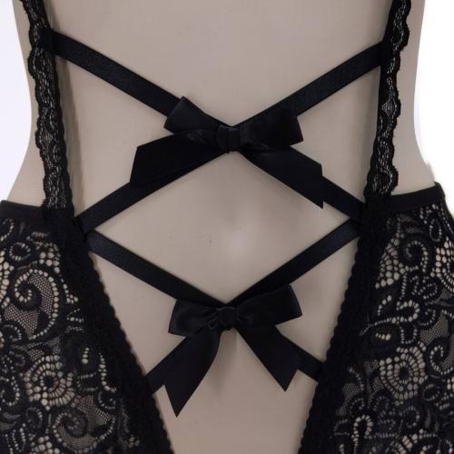 可愛いが詰まったセクシーテディ(SEXYTEDDY) 。リボンとレースの可愛らしい表の顔にオープンクロッチと大胆に空いたバックシャンのセクシーなデザインからは想像を良い意味で裏切ってくれる、可愛い顔してあざといテディ。肩紐とホックで調整が可能です。