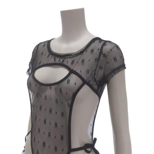 大胆なハイレグがボディラインを妖艶に見せる花嫁風セクシーテディ(SEXYTEDDY) 。小花柄のレース生地は清純なイメージがありながら、バストまで伸びるハイレグが大胆セクシーで矛盾を生み出します。クロッチはスナップボタンで開閉ができ、脱着しやすいデザインに仕上げています。